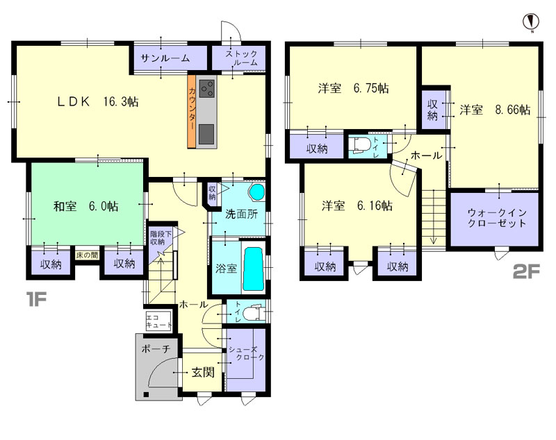 2階: 53.43㎡(16.16坪)